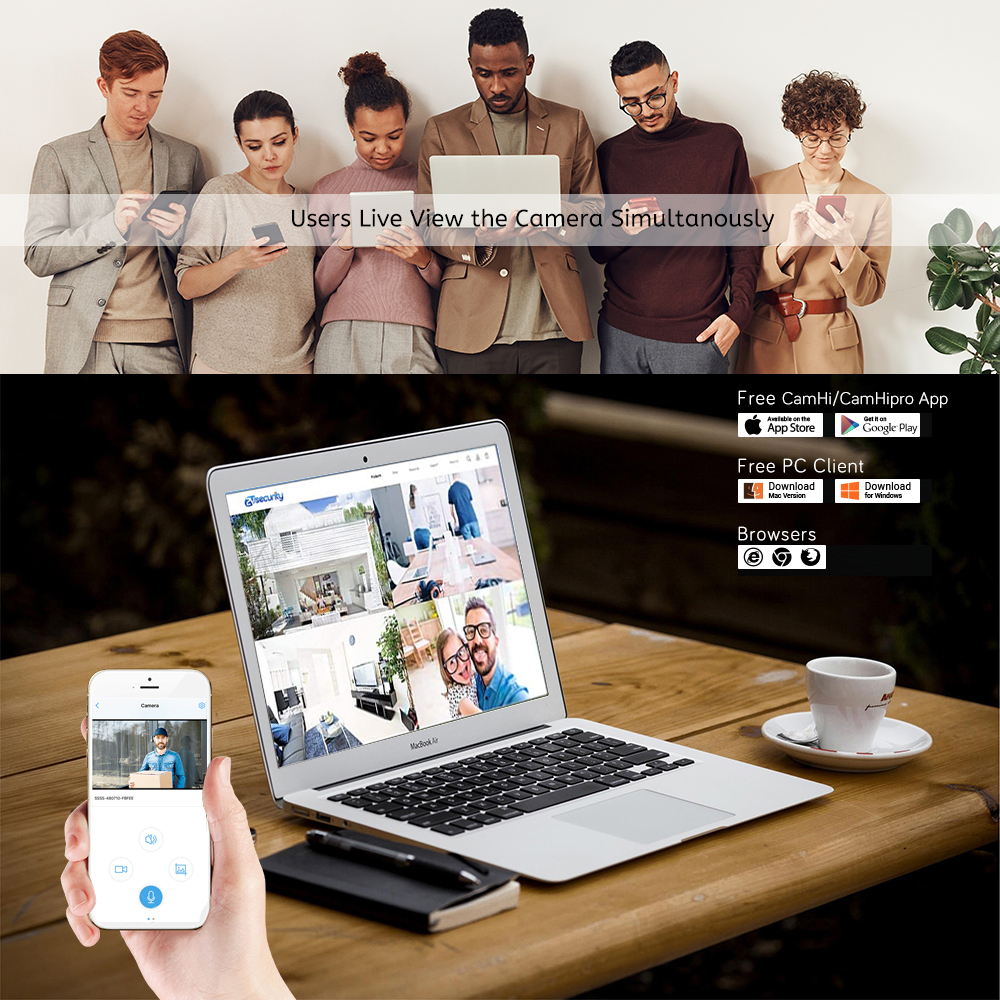 Supports multi-users and multi-devices view simultaneously. You could share your camera with family or your friends. After sharing, they will be able to access the same camera simultaneously,so that you could enjoy the great moments together.