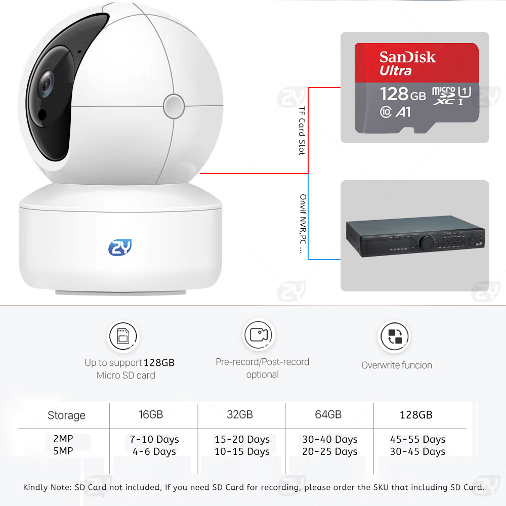Supports SD card storage up to 128GB.