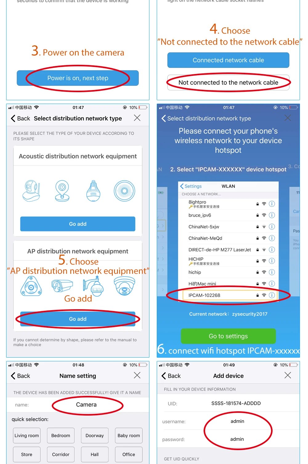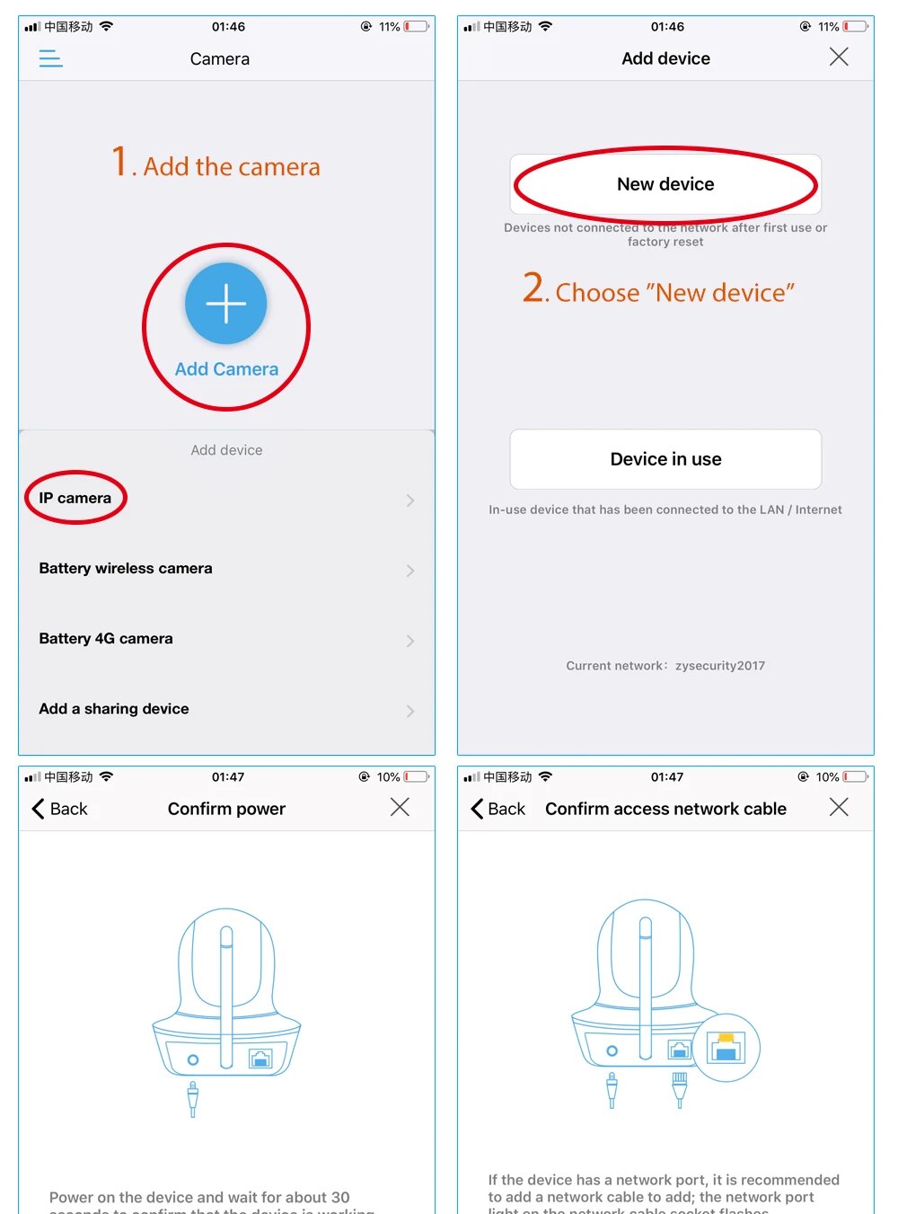 ZYsecurity IP camera comes with a QR code that can be scanned with a mobile device using our free app (iOs and Android). This wireless camera can be quickly and easily set up.