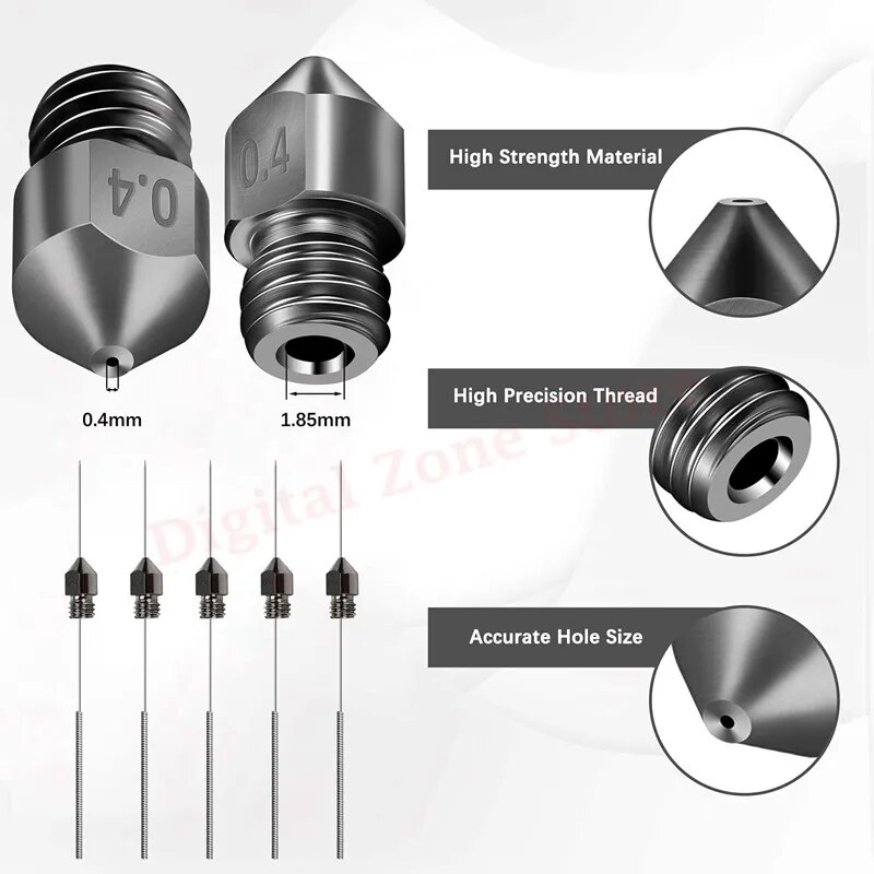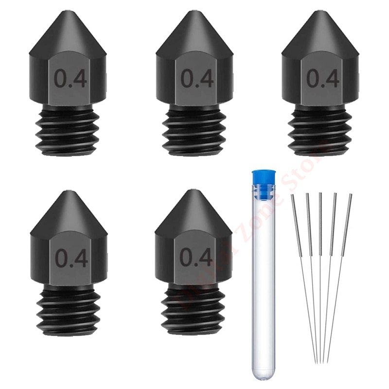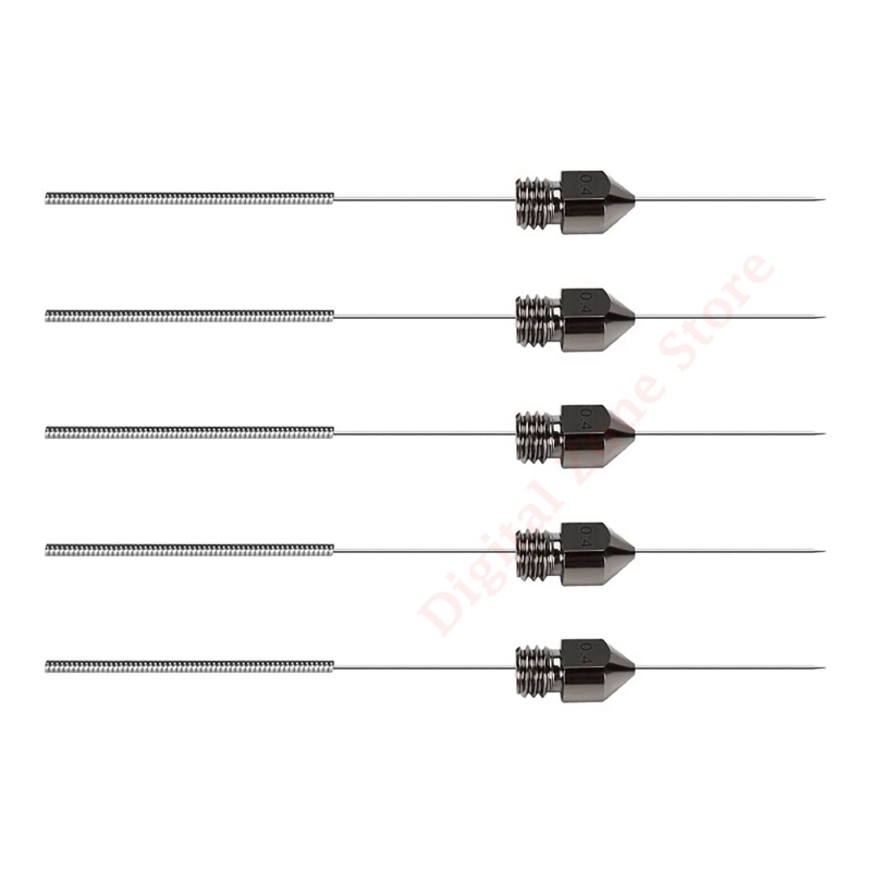 5 шт. 0,4 мм/1,75 мм сопла MK8 из закаленной стали с 0,35 мм иглой для очистки сопла для 3D принтера Makerbot, Ender 3, Φ