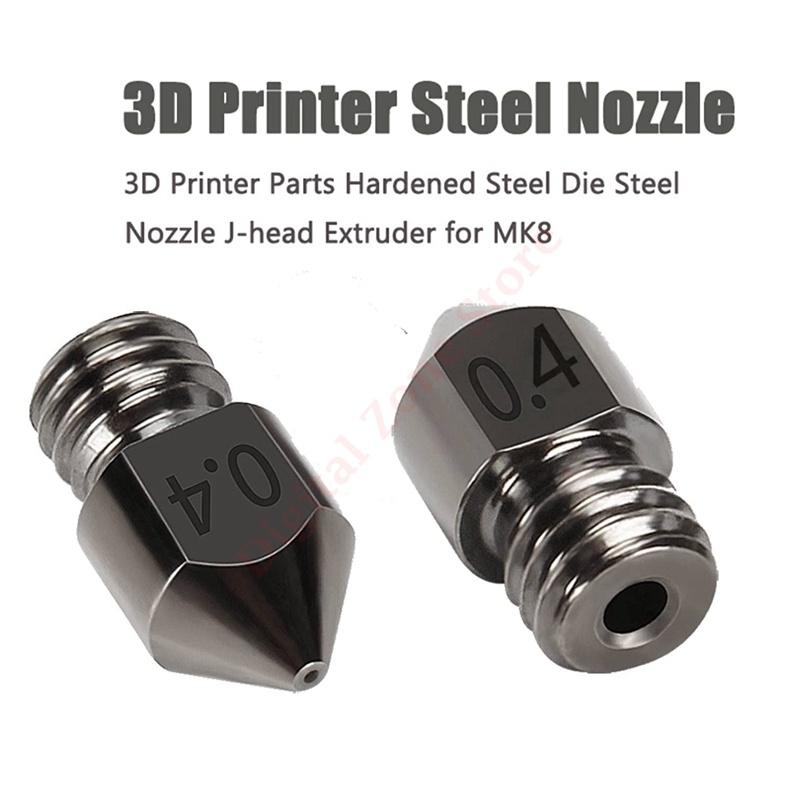 Сопла MK8 изготовлены из высококачественной закаленной стали. Срок службы больше, чем у латунного материала. Простота установки и замены