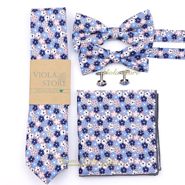 Содержит 5 штук: галстук и Карманный платок, бабочка для взрослых, Детская бабочка и запонки.