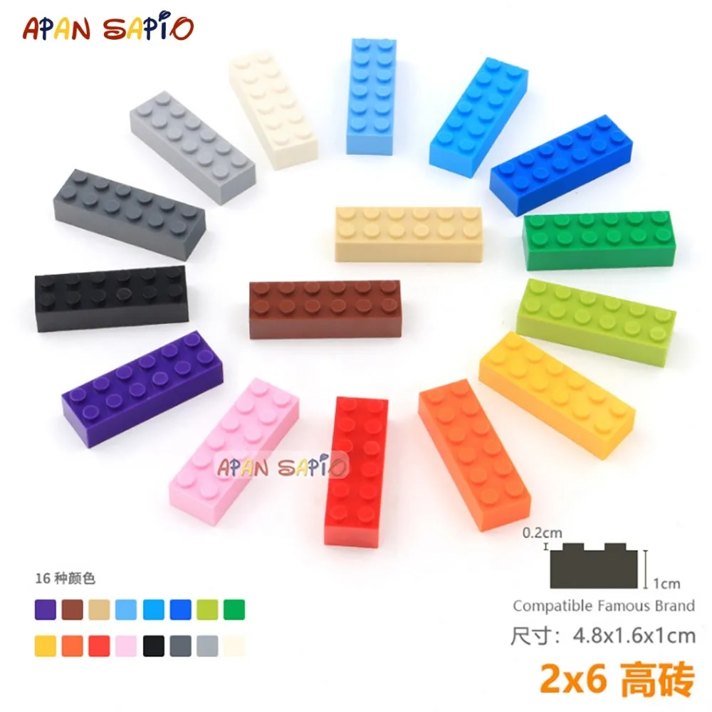 5 шт./лот, сделай сам, строительные блоки кирпичи толстые 2X6 развивающие сборные строительные игрушки для детей размер совместимы с брендом