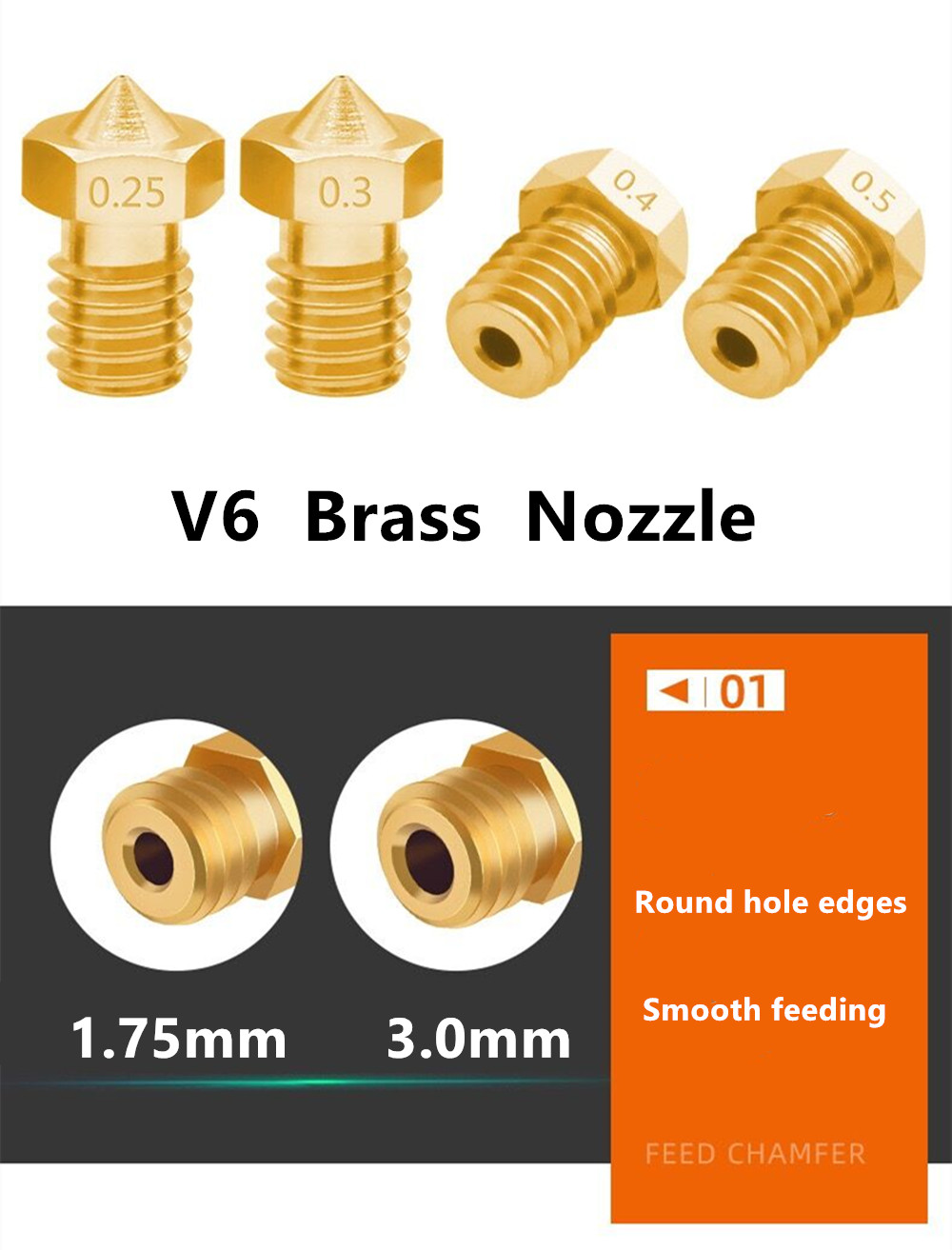 5 шт. V5 V6 Латунное сопло M6 резьба 0,2/0,25/0,3/0,4/0,5/0,6/0,8/1,0 мм E3D V6 сопло для 3,00 мм нити 3D принтер аксессуары