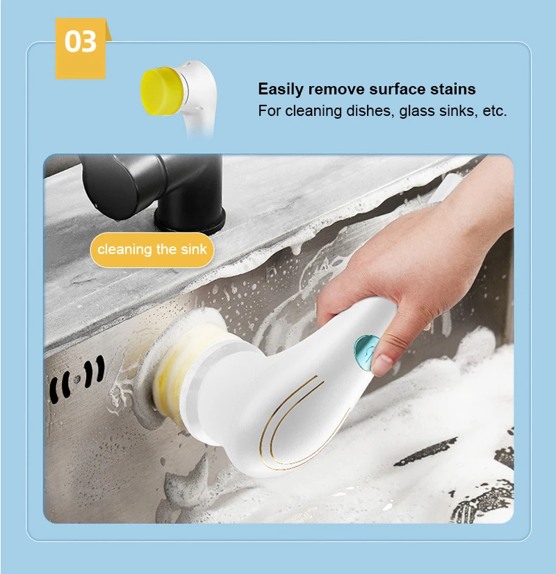 5 в 1 Беспроводная электрическая щетка для чистки ванной, кухни, посуды, ванной