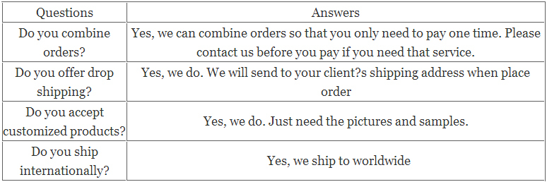 1. Товары будут отправлены в течение 1-3 рабочих дней после четкой оплаты.