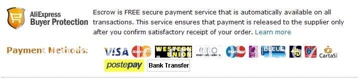 We also can accept Western Union, MoneyGram,Bank Wire Transfer.If you want to pay by them,pls contact us for the money receiver\'s First Name and Last Name.