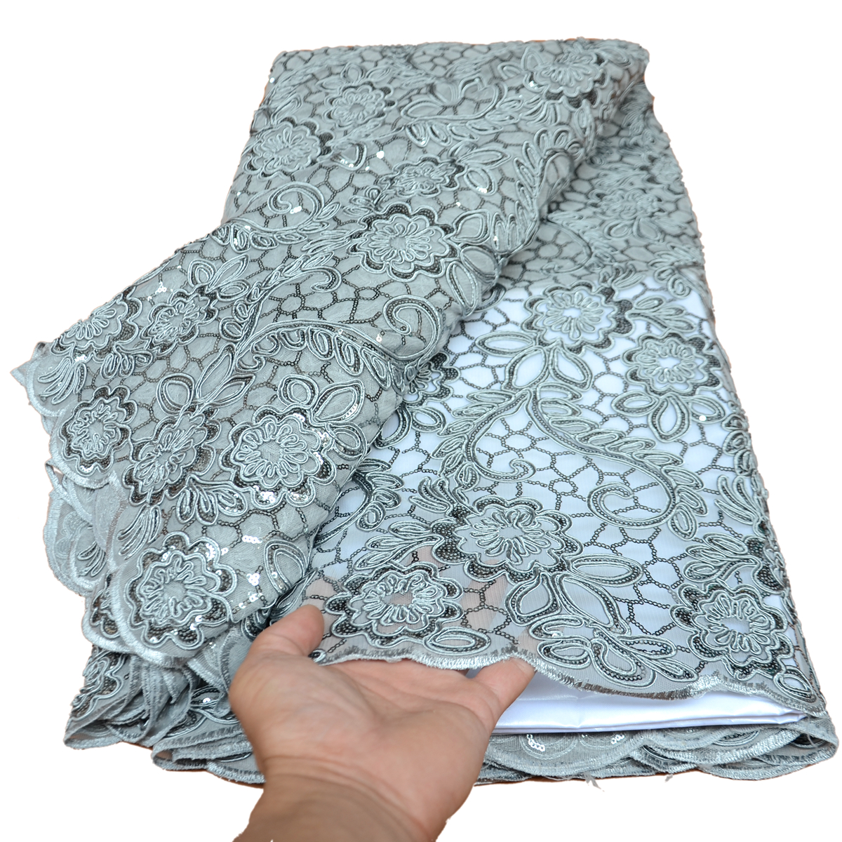 5 ярдов, Высококачественная африканская кружевная ткань с блестками 2023 для свадьбы, нигерийская случайная швейная одежда для оптовой и розничной продажи-910245