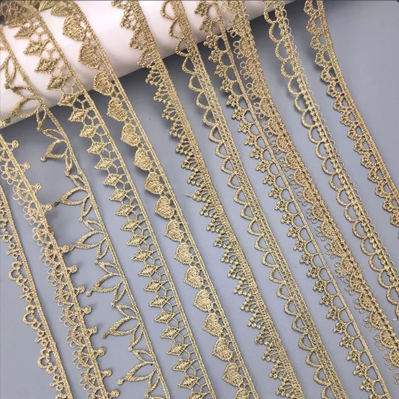 5 ярдов золотая вышивка, Цветочная кружевная отделка, вязаная Свадебная рукоделие «сделай сам», классический стиль, лоскутное искусственное ремесло