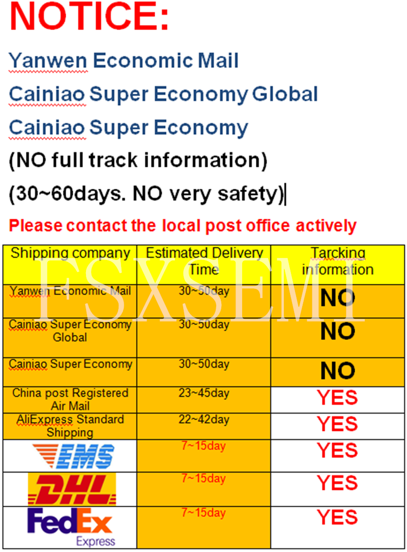 Вы можете выбрать заказную авиапочту Китая или другую Экспресс-доставку, у них есть полная информация для отслеживания.