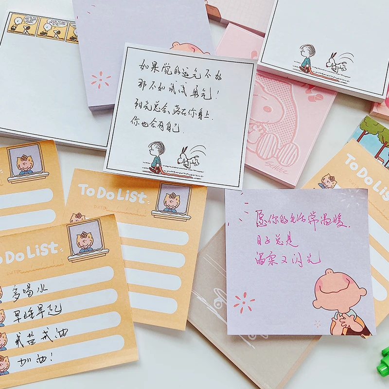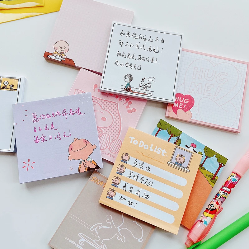 50 шт., 8*8 см, Снупи, мультяшная симпатичная Липкая Книга для записей, спасательная запись, ручная запись, материал, кавайная аниме игрушка для детей, подарки
