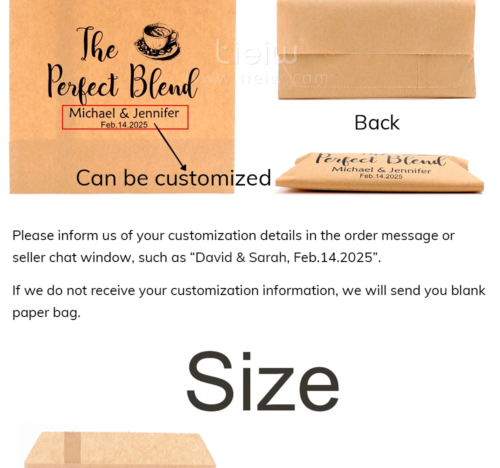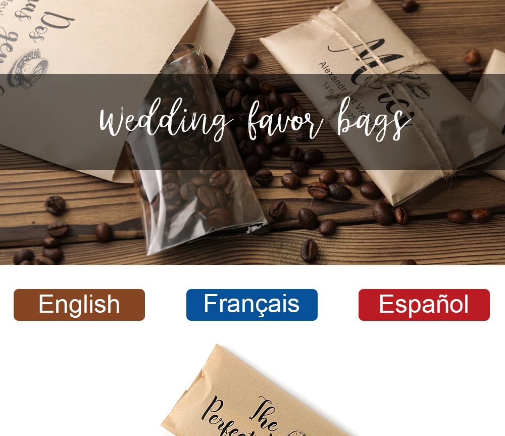 Продукт: Свадебный душ Coffee Favor-Сумка для кофе-Свадебная пользу-Кофейный эспрессо в зернах-Бумажные пакеты с печатью на заказ Идеальная смесь