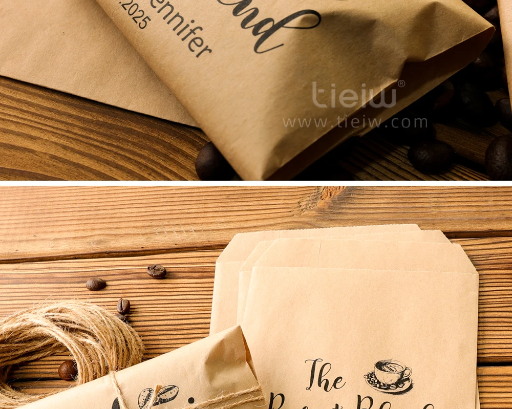 Представляем наши персонализированные пакеты для свадебных подарков, изготовленные из высококачественной крафт-бумаги и идеально подходящие для хранения ваших собственных свежеобжаренных кофейных зерен. Эти сумки могут быть настроены с именами и датой свадьбы счастливой пары, что делает их уникальным и запоминающимся подарком для ваших гостей свадьбы. Каждая сумка поставляется с индивидуальным прозрачным пакетом OPP, гарантируя, что кофейные зерна останутся свежими и вкусными. Доступные как в натуральном, так и в белом цвете, эти сумки не только практичны, но и стильны, добавляя элегантности вашему особому дню. Закажите сейчас и Подарите своим гостям подарок, который они никогда не забудут!