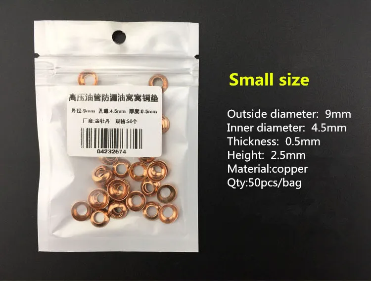 50 шт., медные прокладки для труб высокого давления, коническая прокладка для масляных труб высокого давления
