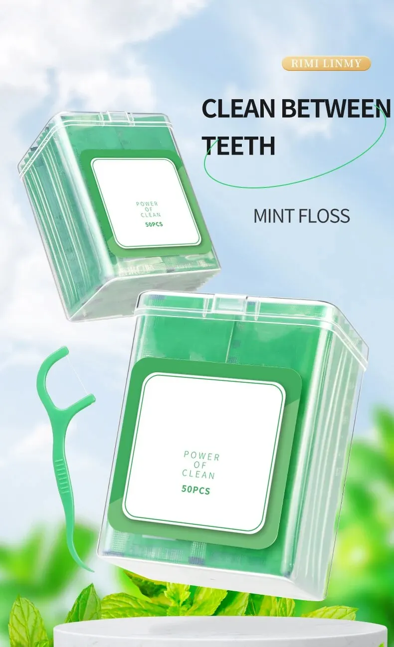 50 шт Мятные ароматизированные зубные нити Пластиковые зубочистки-одиночная отдельная упаковка-Одноразовые Инструменты для чистки зубов-Oral Car
