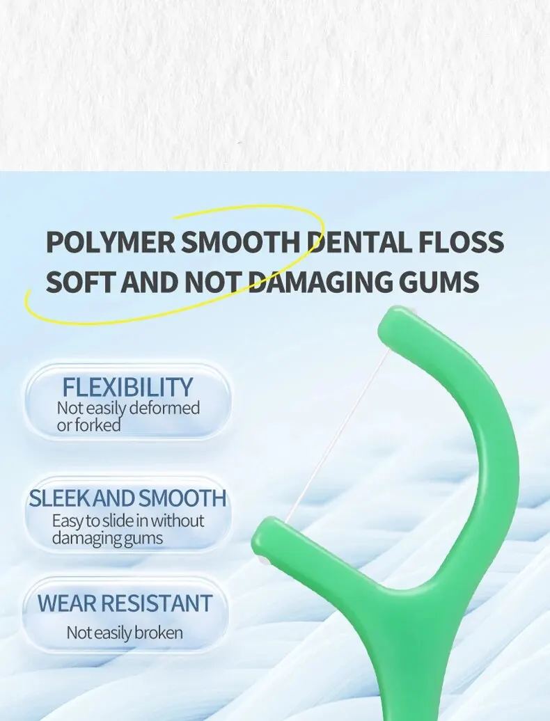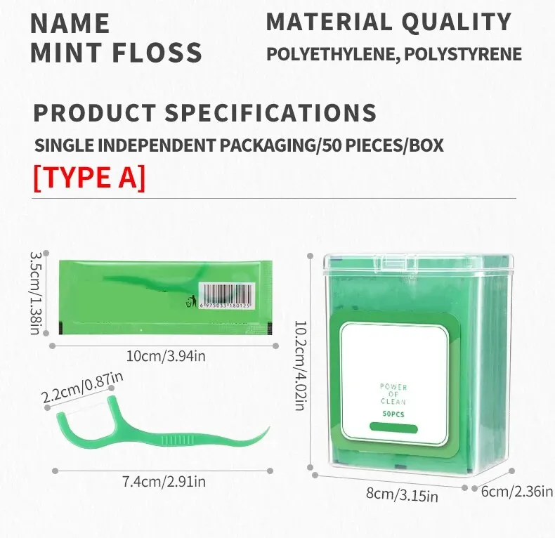 • Со вкусом мяты:Мятный вкус этих зубных нитей придает освежающий оттенок вашей рутине ухода за полостью рта.