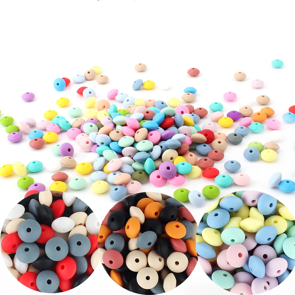 50 шт./партия, 12 мм Силиконовые Бусины из чечевицы, силиконовые DIY Подвески, аксессуары для ухода за новорожденными, BPA, Бесплатная Прорезывание Зубов, ожерелье, игрушка для прорезывания зубов