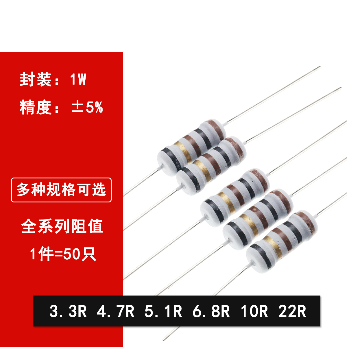 50 шт. сопротивление обмотки предохранителя 1 Вт точность 5% об Ом R 5.1R 6.8R 10R 22R KNP сопротивление обмотки