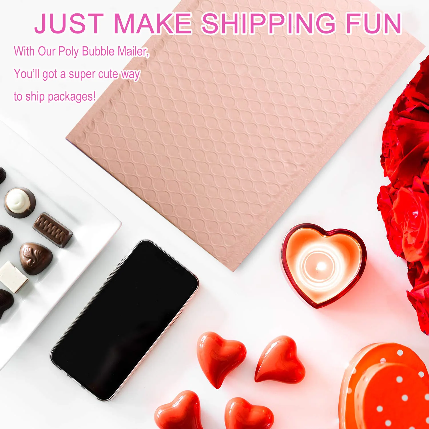 Светильник-розовый и телесный розовый полиэтиленовый пузырчатый пакет Конверты с мягким вкладышем, почтовый пакет, самозапечатывающиеся пакеты для доставки