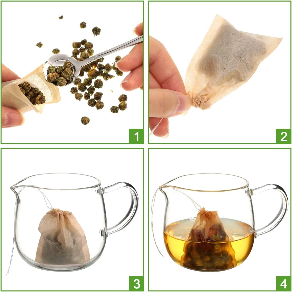 Идеально подходит для любителей чая: Наши чайные пакетики идеально подходят для свободного чая, специй, растений, кофе или травяного порошка. 100% натуральный, неотбеленный, разработан как можно более чисто, так что на вкус чая не влияют мешки, а также бумага достаточно тонкая, чтобы чай легко просачивался, стекает вкус полный и приятный пивоварни!