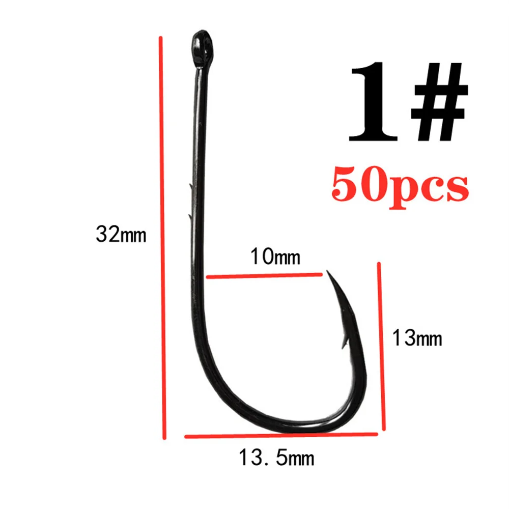 50pcs/lot Sharp Long Shank Barbed Fishing Hook Sea Worm Carp Single Circle Hook Set Fishing Accessories Anti-rust Fishhooks