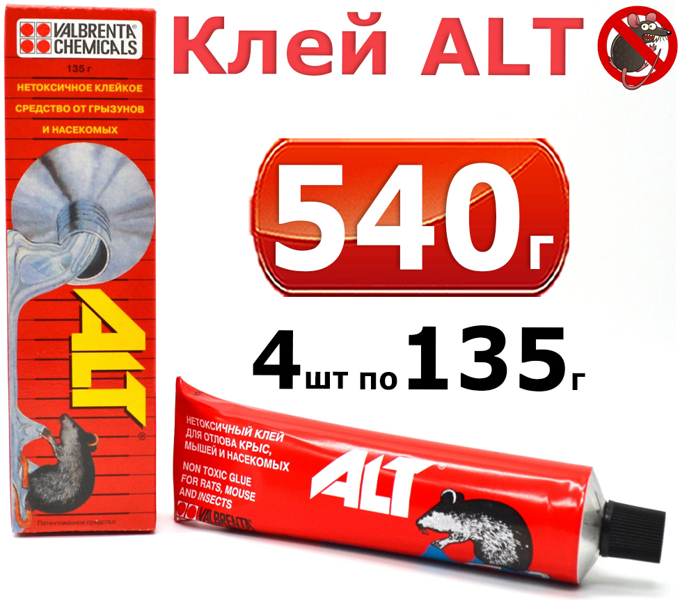 540г Нетоксичный клей "ALT" от грызунов и насекомых, туба 135гр -4тубы