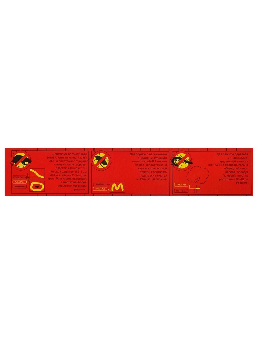 Клей ALT – высокоэффективный препарат для борьбы с грызунами и насекомыми. Имеет вид прозрачной густой массы, без специфического запаха. Нетоксичен, влагостоек. Благодаря высокой вязкости позволяет быстро создавать клеевые ловушки в местах скопления вредителей.