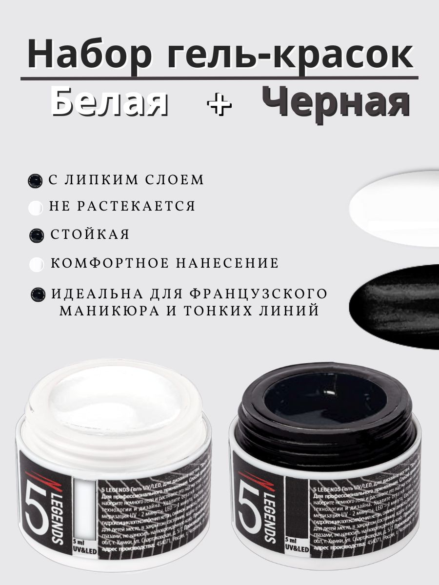 5LEGENDS Набор гель-красок для ногтей "Paint Gel", черная 5мл. + белая 5мл.