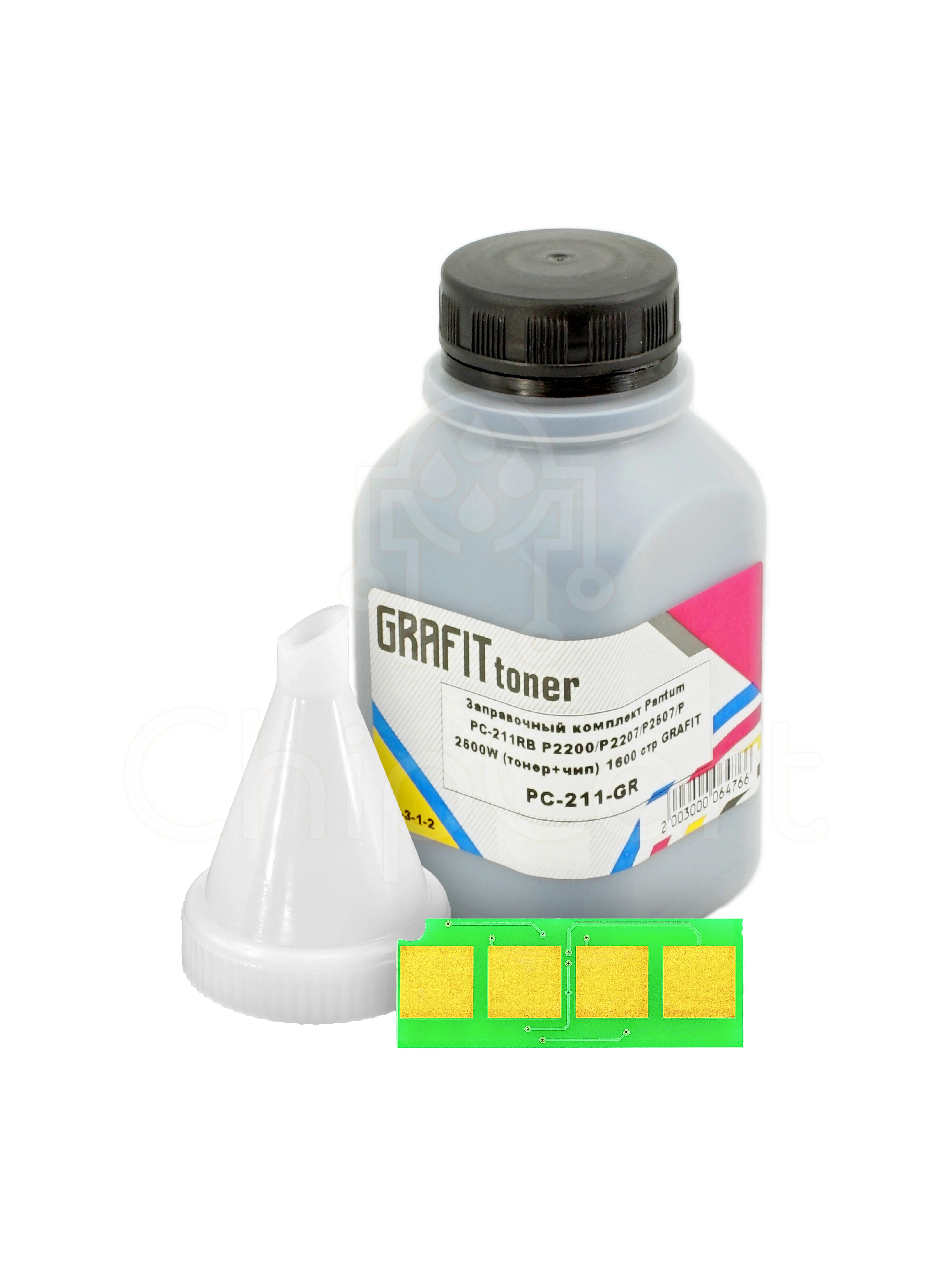 5шт. Заправочный комплект для Pantum PC-211 M6500/P2500W/M6607NW/P2200/M6550NW/P2507/P2207, PC 211, (тонер+чип) 1600стр GRAFIT