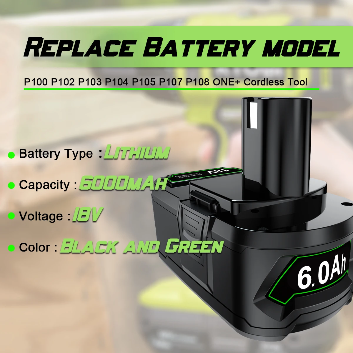 6,0 Ач 18 в сменная батарея для Ryobi 18 В литиевая батарея для P108 P102 P103 P104 P109 18 в для одного беспроводного инструмента