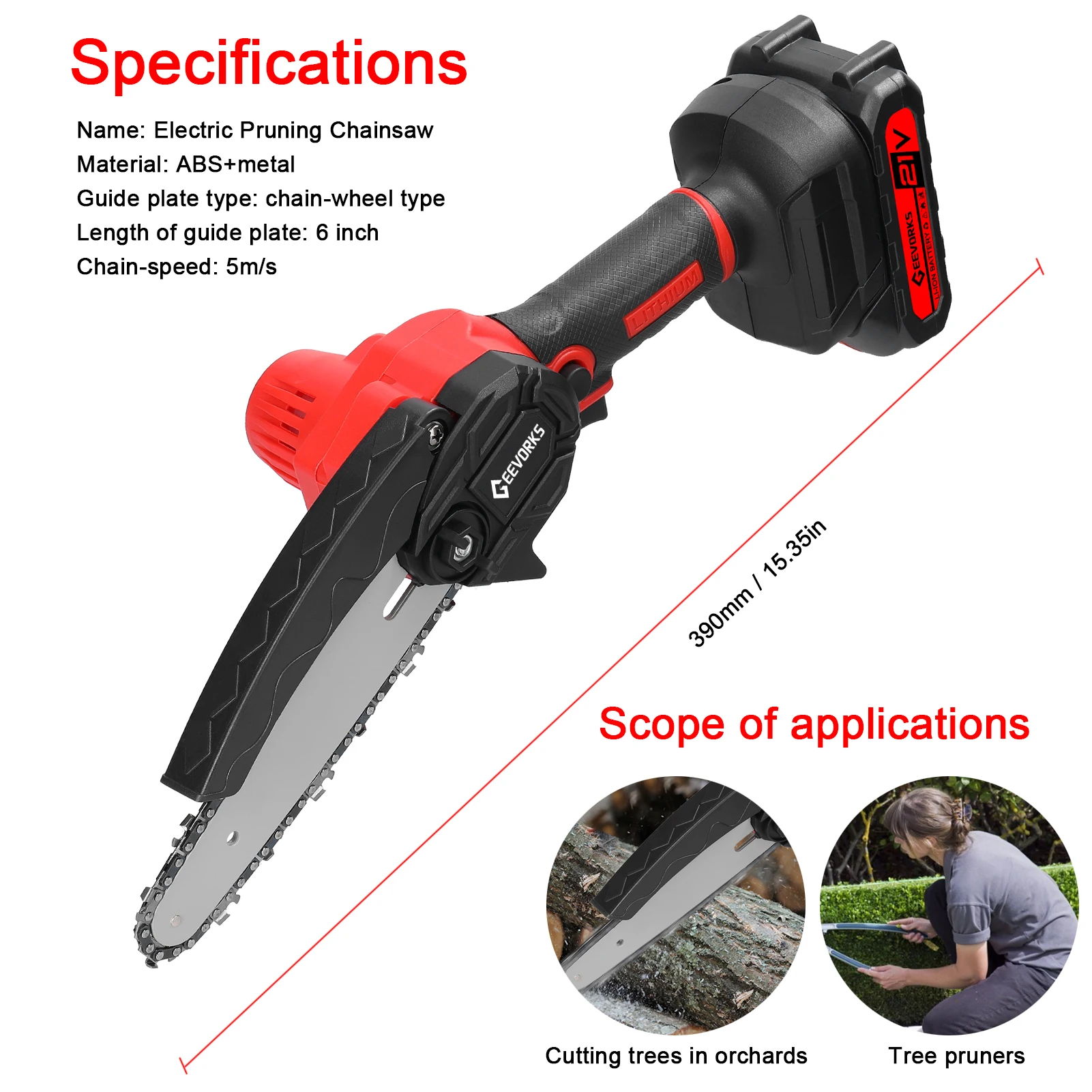 6 -дюймовая бесщеточная цепная пила Беспроводная мини -портативная обрезка пила Электрический режущий инструмент для пилы для деревообработки для батареи Makita 21V