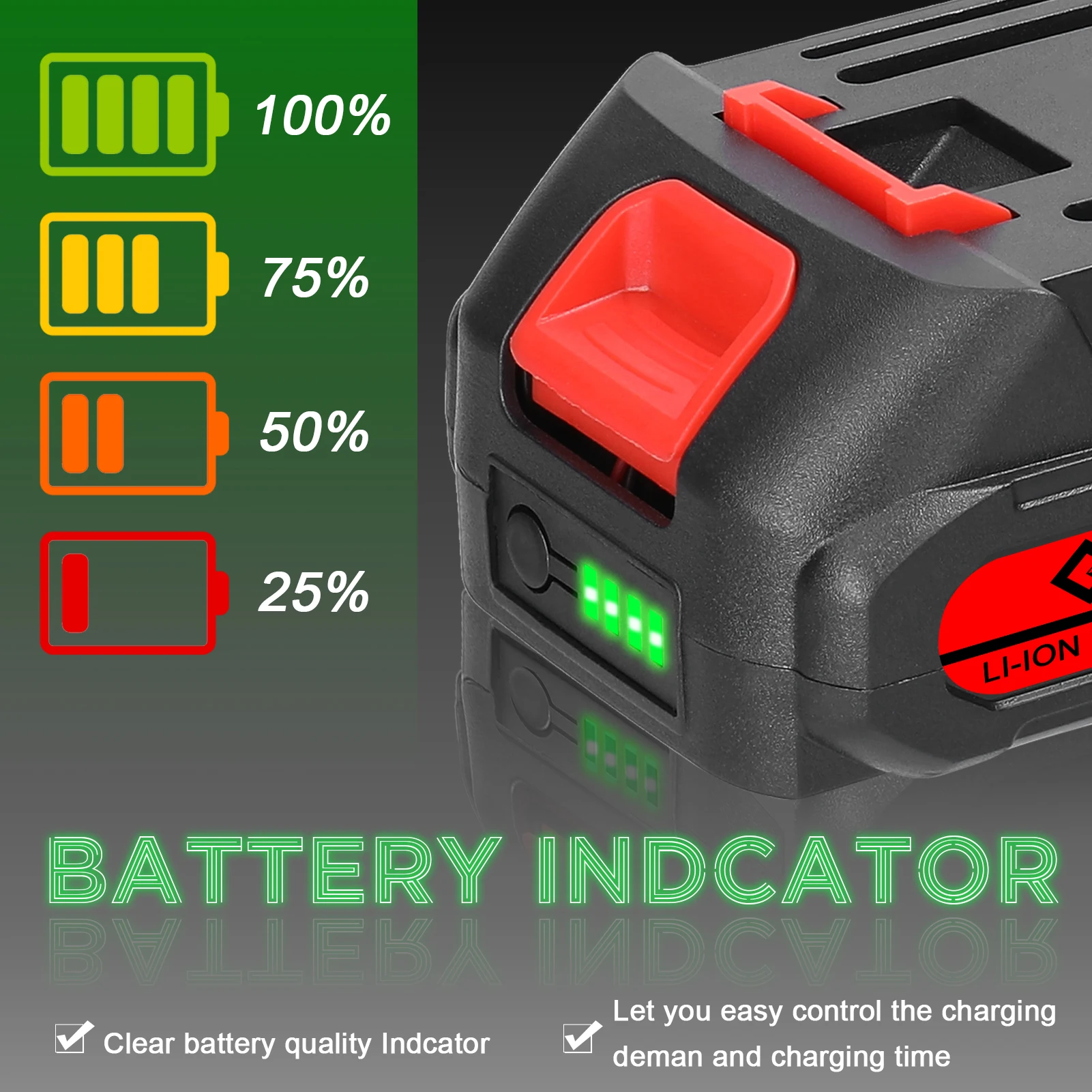 Питание от литиевой аккумуляторной батареи 21 В, которая обеспечивает быструю зарядку и поддерживает длительное время непрерывной работы, с хорошей прочностью и длительным сроком службы.