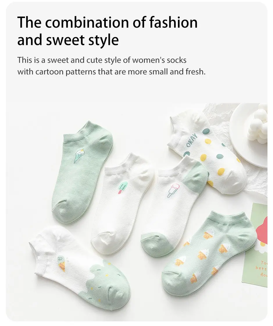 6 пар женских летних тонких коротких носков, милые дышащие сетчатые удобные и маленькие цветочные фрагменты