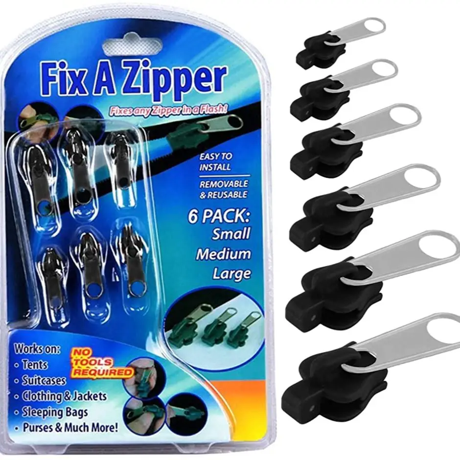 6 шт. универсальная мгновенная фиксация молнии 3 размера Ремонтный комплект Замена молнии слайдер зубы спасения новый дизайн молнии Швейные аксессуары