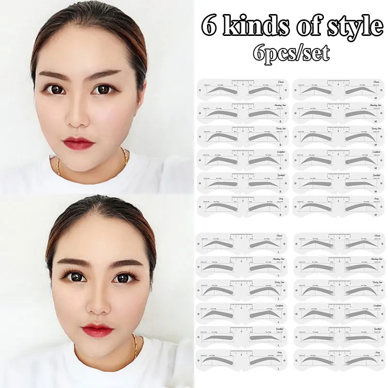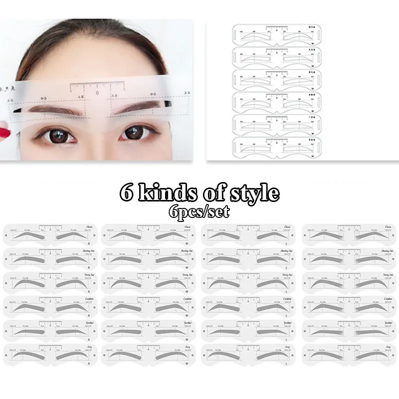 6 стилей форма для макияжа бровей PEVA Мягкий Формирователь бровей с эластичной лентой многоразовые инструменты для самостоятельного макияжа для начинающих трафареты для бровей