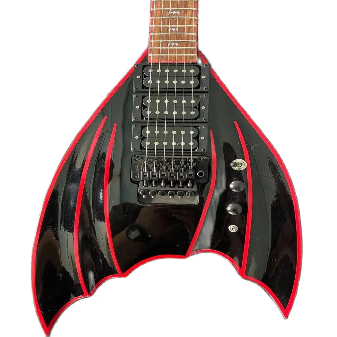 6-струнная Высококачественная электрогитара, черная и красная полосатая форма летучей мыши, можно настроить, бесплатная доставка