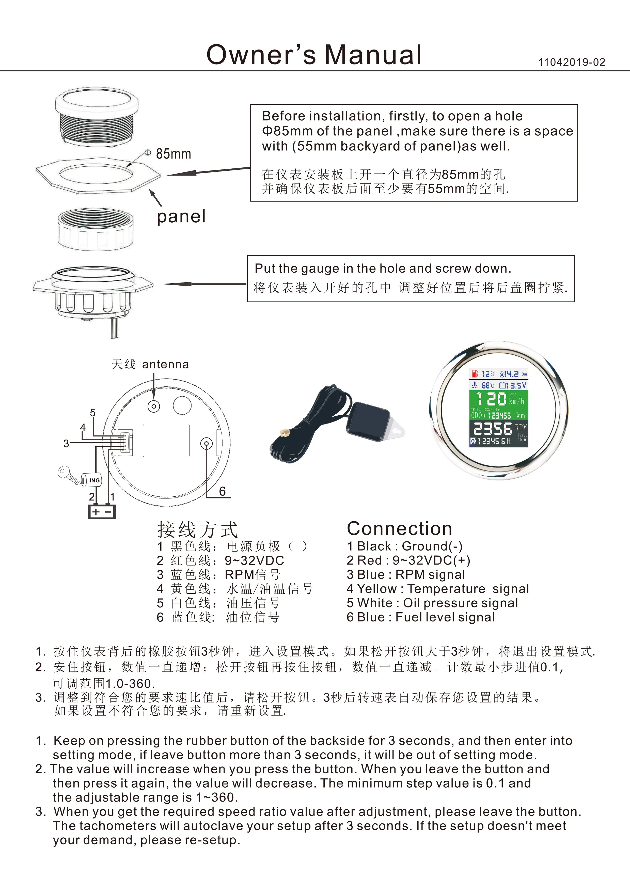 -Уровень топлива: 0-100% (нажмите кнопку возврата, чтобы изменить сигнал уровня: 0-190 Ом/240-33 Ом).