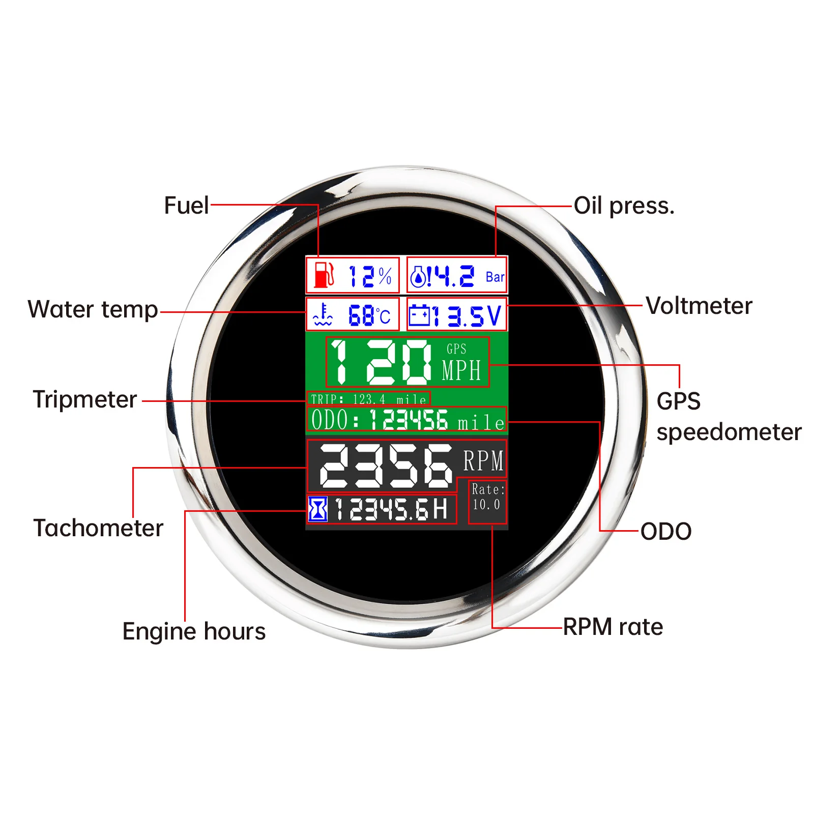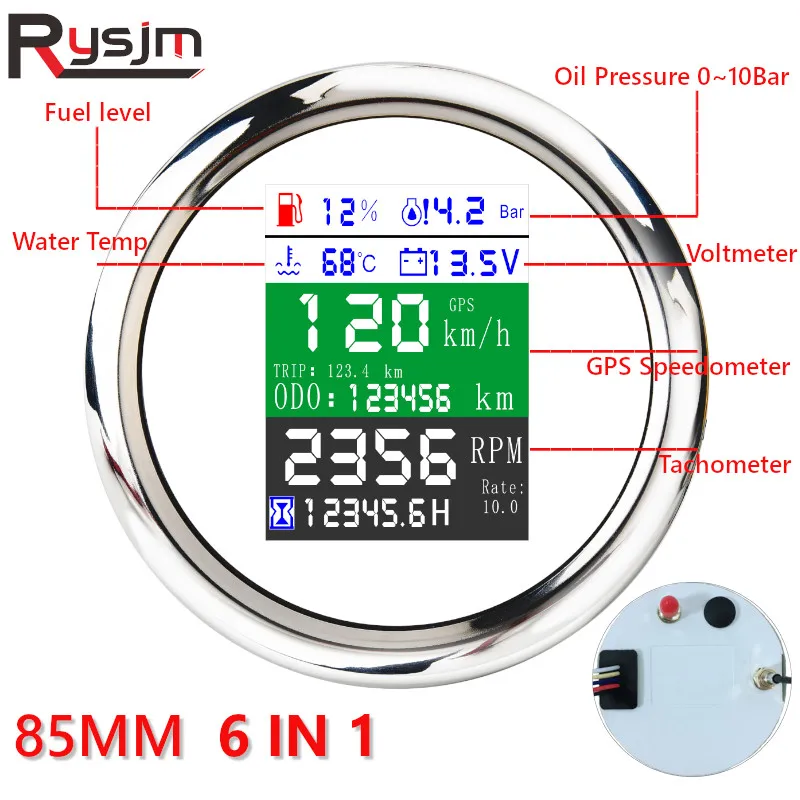 6 в 1 GPS Спидометр Тахометр Датчик уровня топлива воды температуры масла пресс 0 ~ 10 бар датчик сигнализации температуры топлива для автомобиля лодки мотора