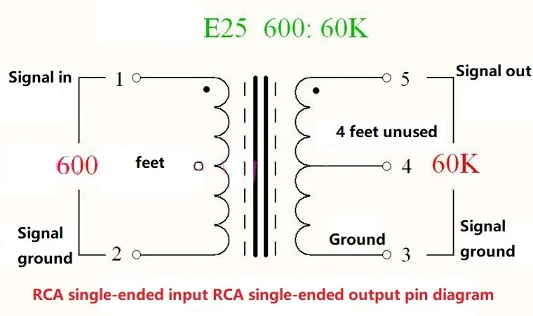 Соотношение напряжений 600:60 кОм составляет 1:10. Другими словами, входное напряжение 600 Ом составляет 1 В, выходное напряжение обмотки 60 К составляет 10 В, а сигнал усиливается и усиливается в 10 раз.