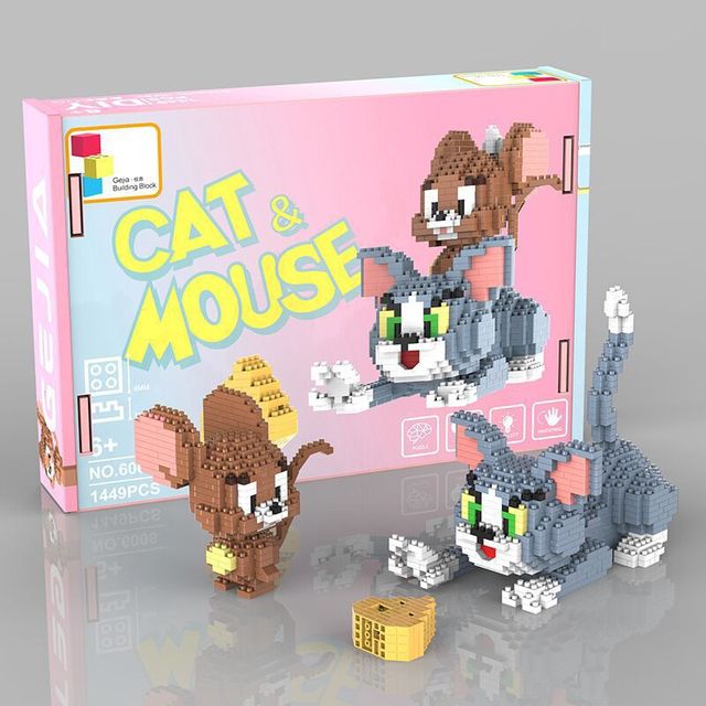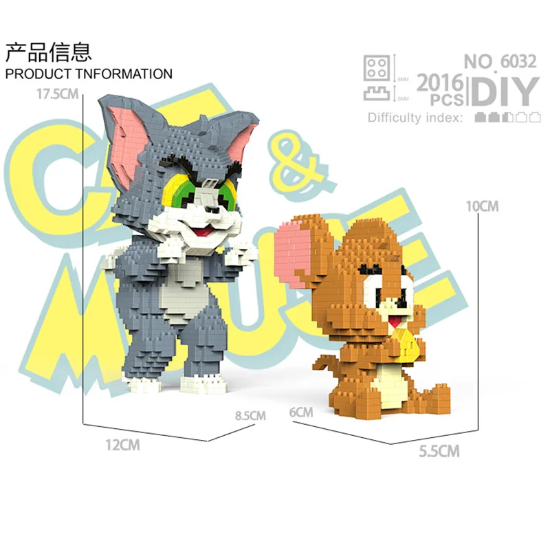 6006 Мультяшные животные мир кошка мышь питомец сыр еда 3D модель Сделай Сам Мини Алмазные Блоки Образовательные Кирпичи игрушка для детей