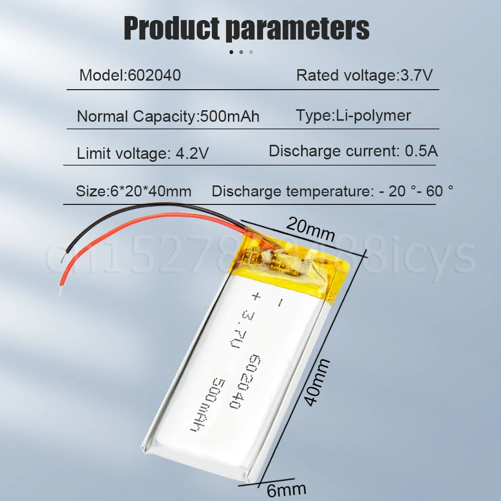 602040 500 мАч 3,7 В Li-Po литий-ионный Литий-полимерный аккумулятор для MP3 MP4 MP5 GPS игрушка DVR Bluetooth динамик ручка для записи