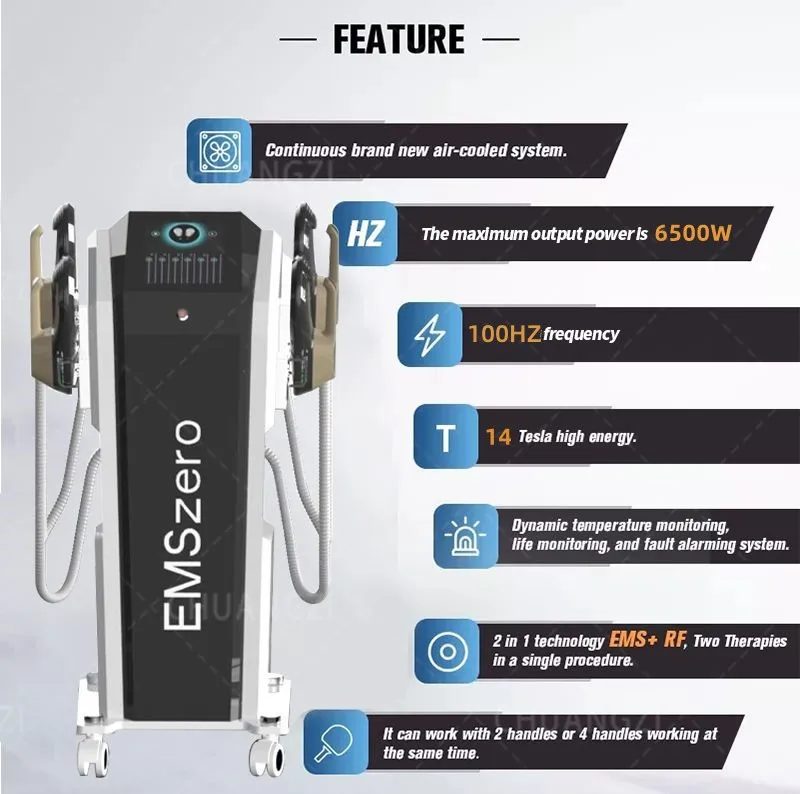 1. Хороший результат-30 минут лечения = 20000 тренировок, увеличение 16% мышц и уменьшение 21% жира После примерно 2-4 курсов 2. неинвазивный, без побочных эффектов и безболезненный 3. 7 Тесла Высокая интенсивность-покрывают большие скелетные мышцы и переделывают их внутреннюю структуру. 4. Запатентованная система охлаждения -- деятельность долгого времени поддержки 5. 2 магнитных аппликатора-расщепляют жировые отложения и повышают мышечный тонус и силу 6. Ориентация на 5 частей тела-живот, руки, бедра, подколенные сухожилия, Бедра 7. Прогрессивная ступенчатая тренировка-улучшите ощущение и эффект от реальных упражнений 8. 5 режимов тренировки: HIIT, гипертрофия, сила, комбинированный 1 HIIT + гипертрофия, комбинированный 2 гипертрофия + Сила