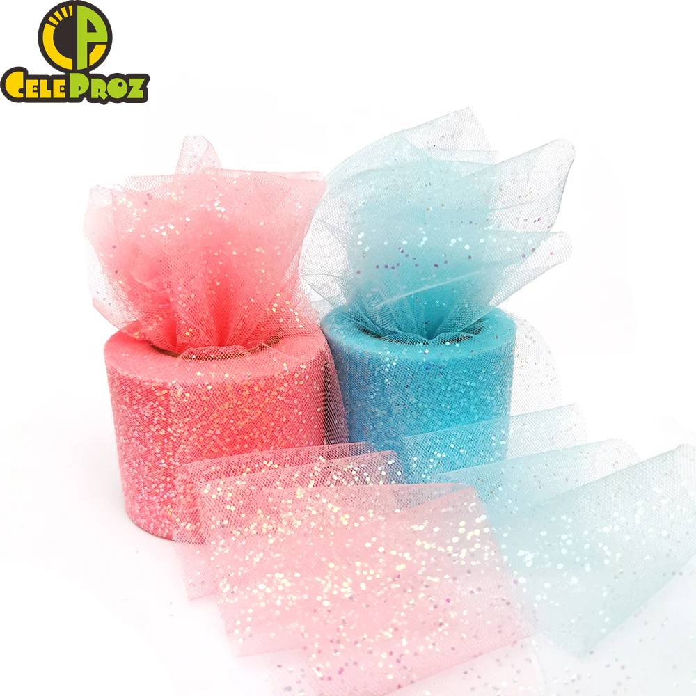 6cm 25yards Glitter Tulle Mesh Ribbon Roll Sequin Gauze DIY Craft Hair Bow Poms Tutu Skirt Journal Wedding Birthday Party Supply