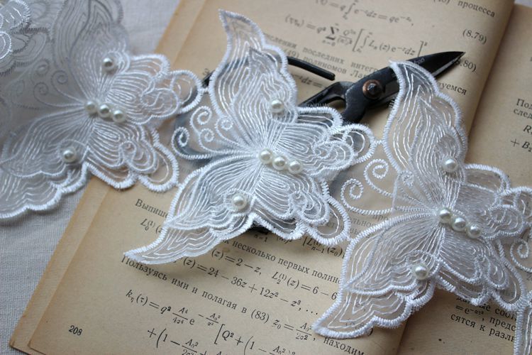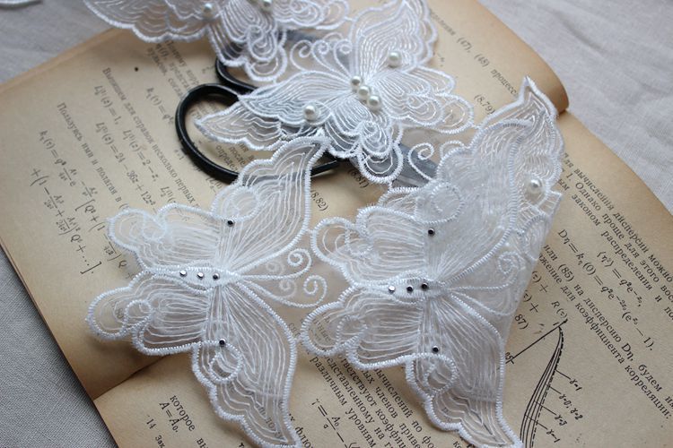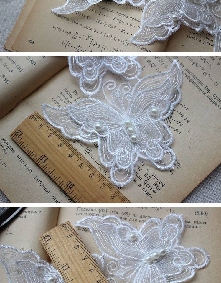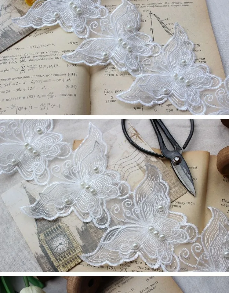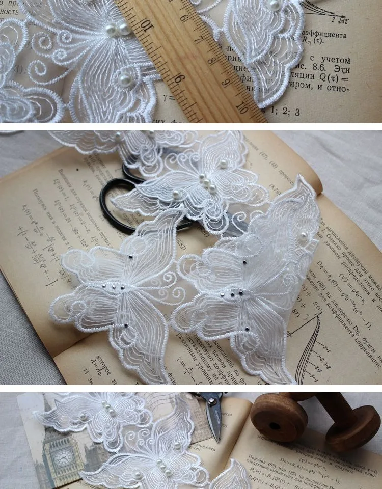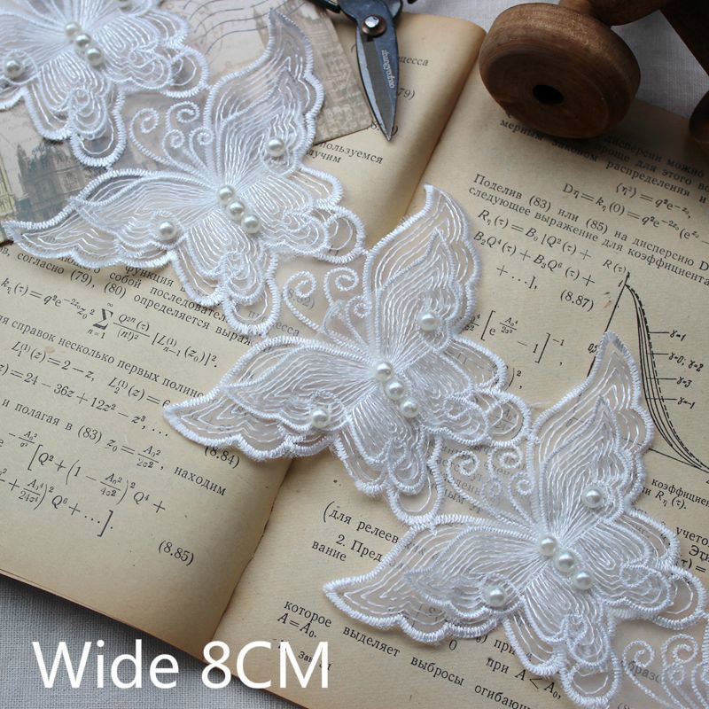 6 шт., ширина 8 см, белая Изысканная органза, 3D бабочка, бисер, кружевная ткань, воротник, нашивка, аппликация, украшенное свадебным платьем, сделай сам, шитье