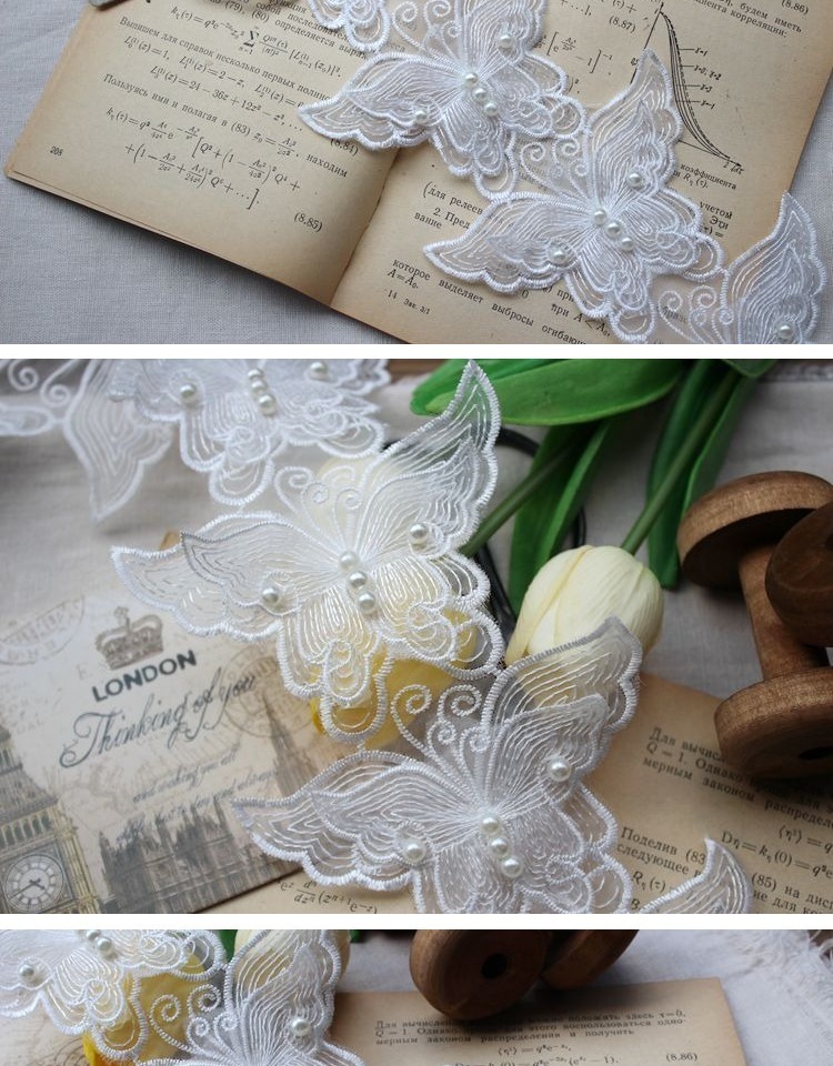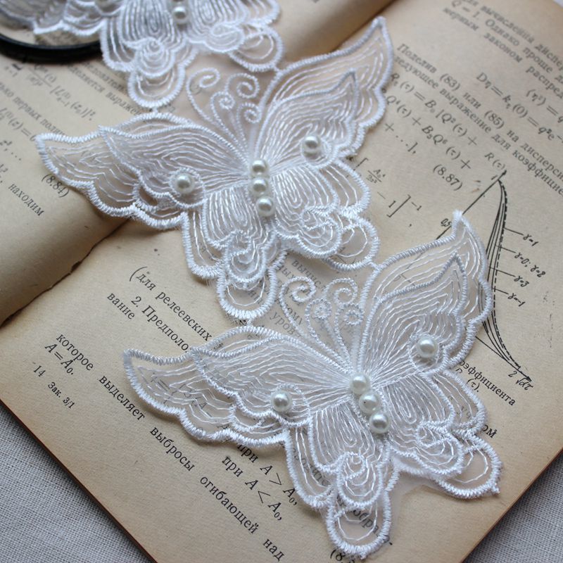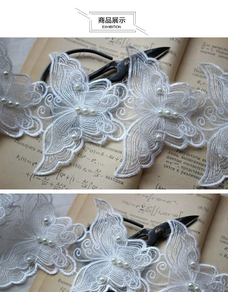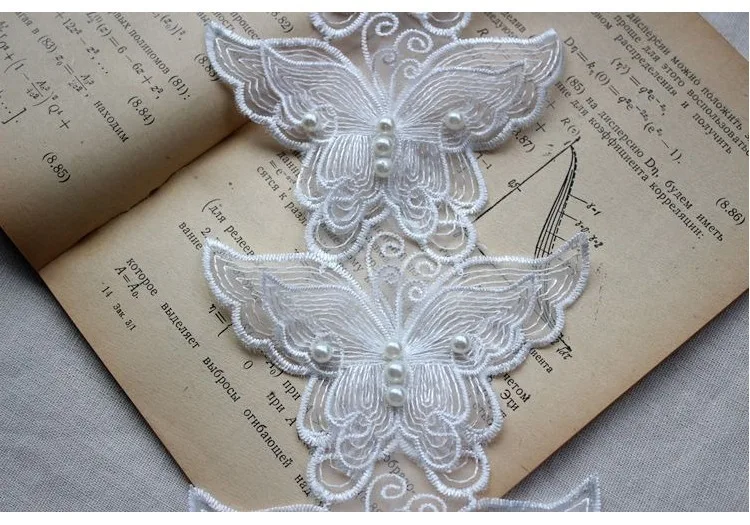 6P 8 см белая Изысканная органза 3D бабочка из бисера тюль кружевная ткань воротник патч аппликация украшенное свадебное платье DIY шитье