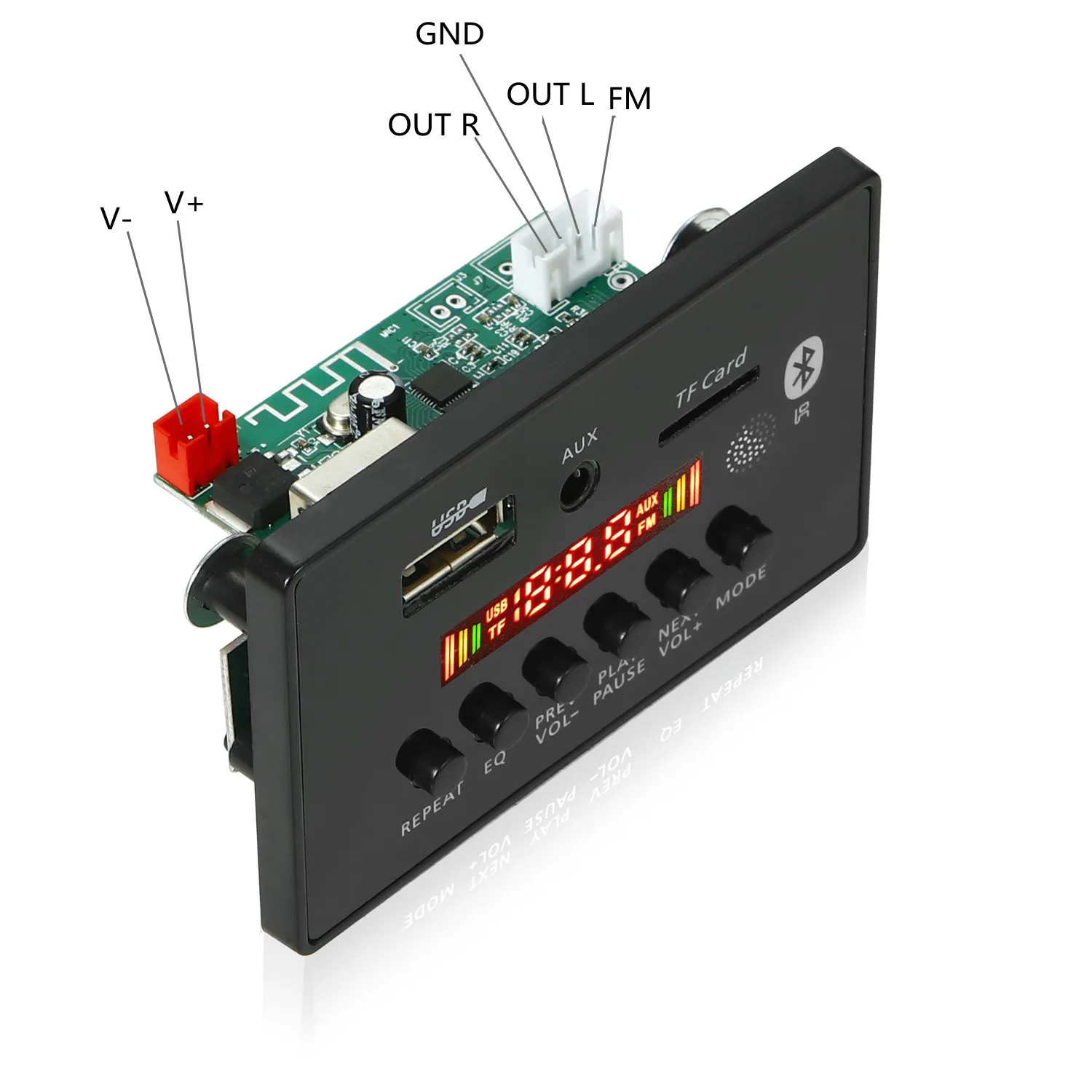 6V 12V Bluetooth 5.0 MP3 Decoding Board Module Wireless Car USB MP3 Player TF Card Slot USB FM with Microphone Handsfree control