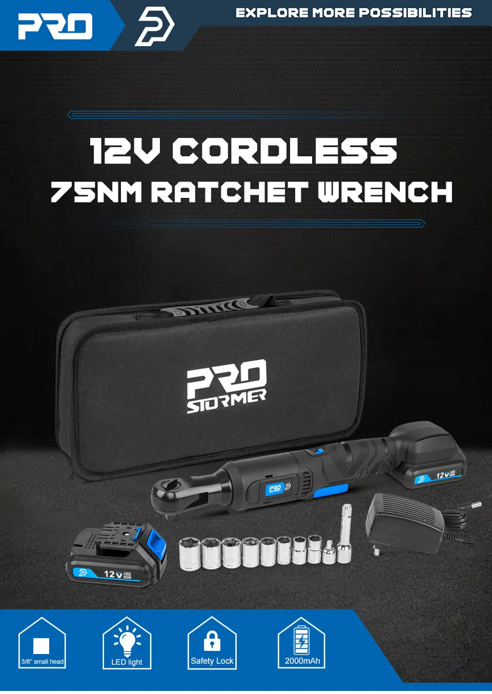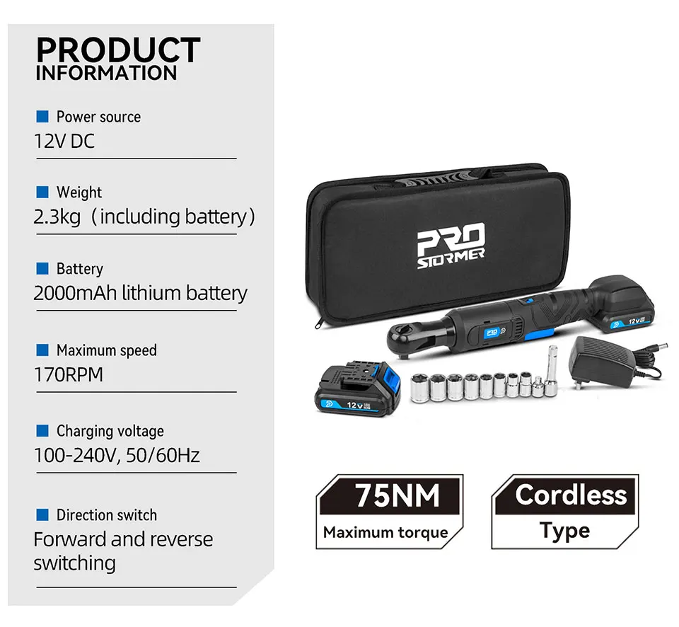 75NM трещоточный ключ 12V Аккумуляторный электрический ключ 3/8 угловая дрель отвертка удаление винта гайка инструмент для ремонта автомобиля от PROSTORMER