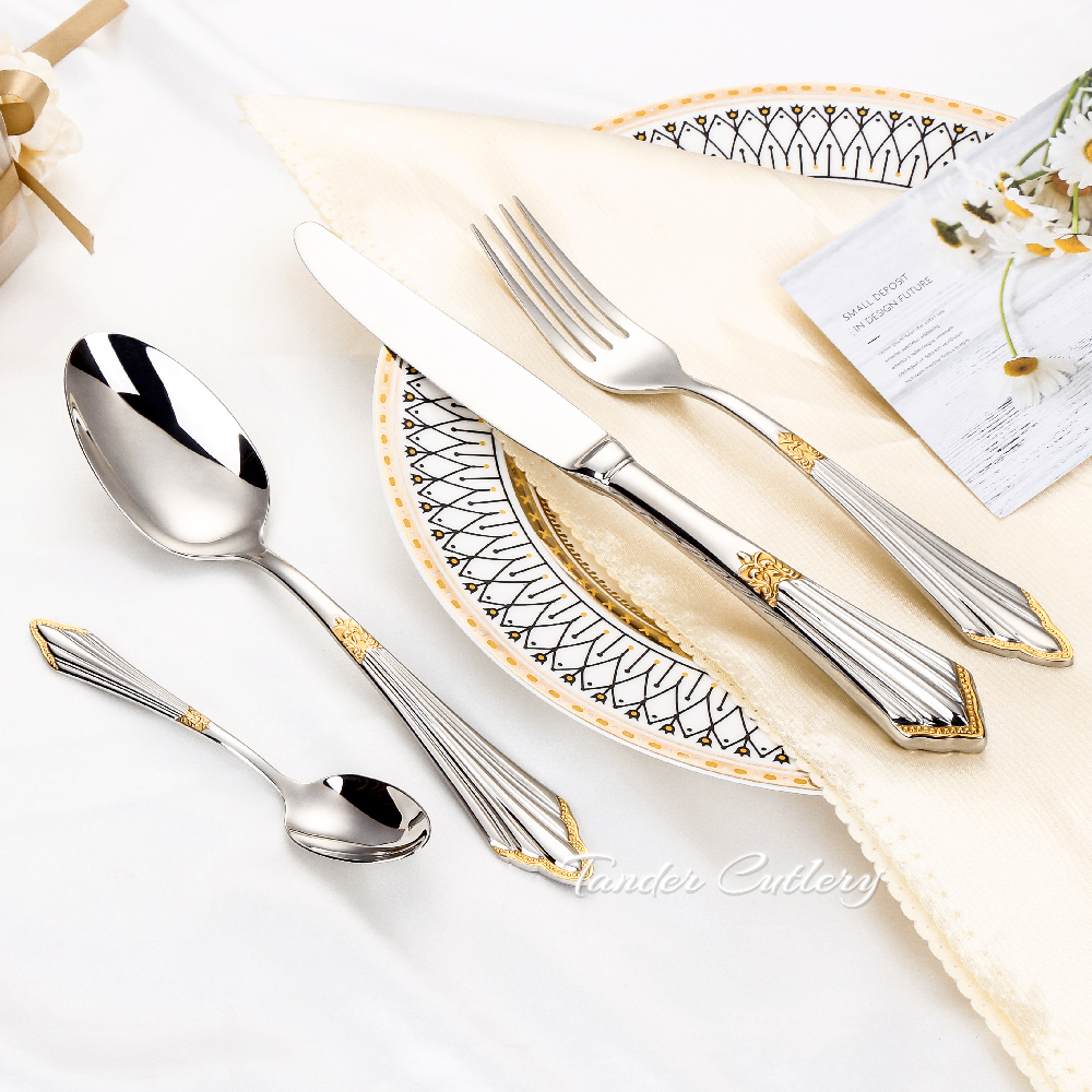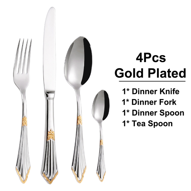 8/12/16/20/24 шт. Позолоченные столовые приборы из нержавеющей стали роскошный столовый набор Серебряный нож вилка ложка зеркало кухонная утварь