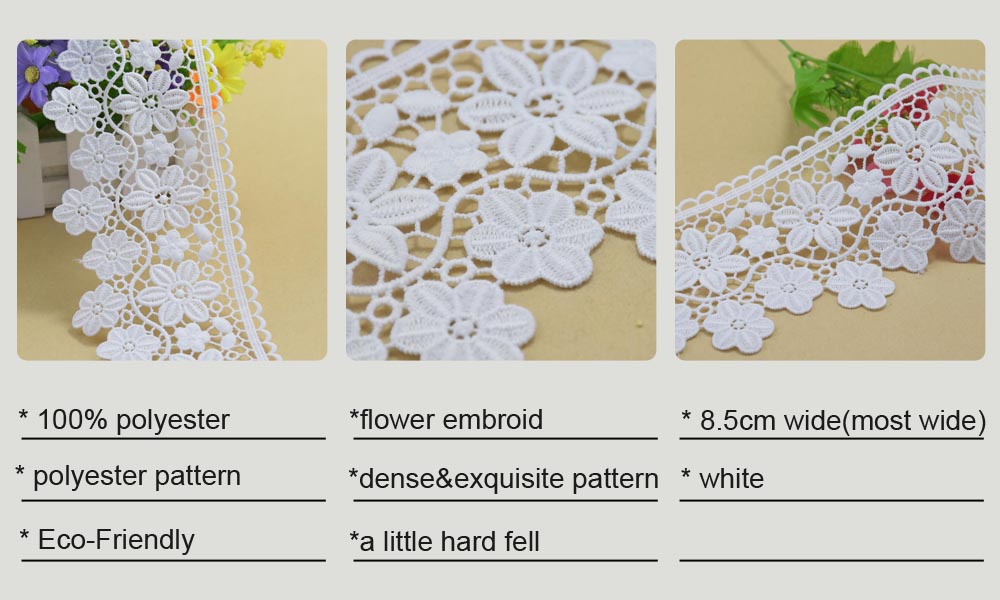 8,5 см белый полиэстер Вышивка Шитье гипюровые ленты кружевная отделка или ткань основовязание DIY аксессуары для одежды Бесплатная доставка #3697