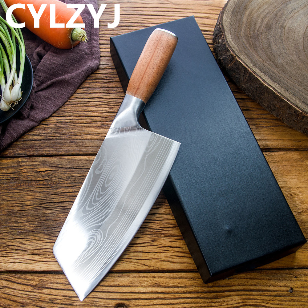 8-дюймовый Кухонный Нож, Набор поварских ножей из нержавеющей стали, нож для нарезки мяса, мясника, нарезки овощей, китайский поварской нож с подарочной коробкой